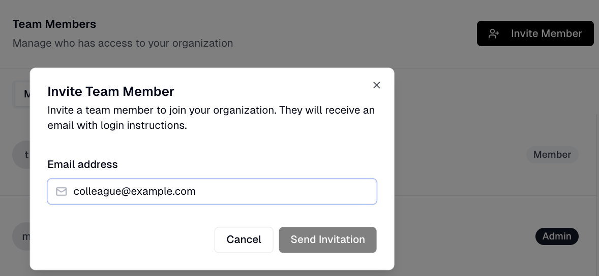 You can invite team members to your Flint organization through the organization settings.